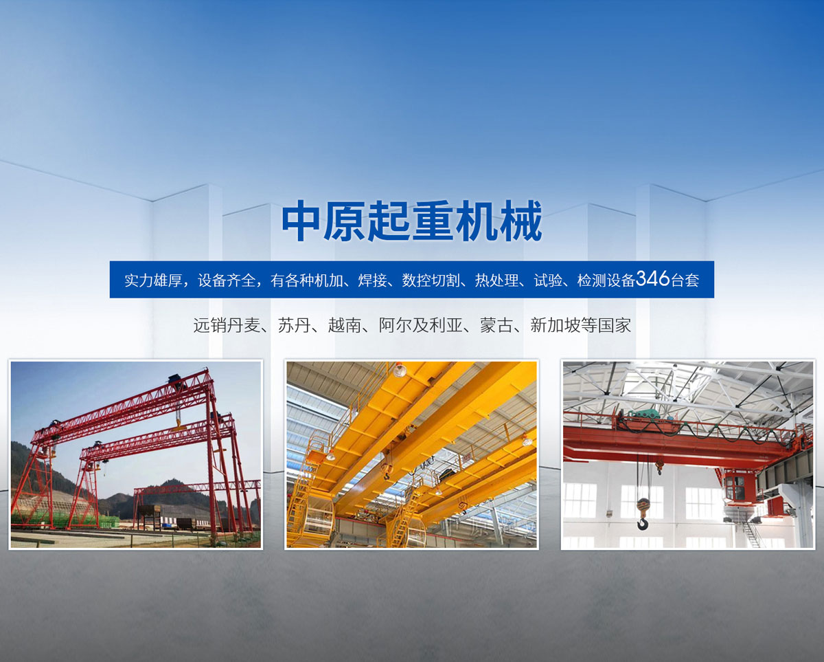 新鄉(xiāng)市中原起重機械有限公司成立于2000年,地處中原,輻射全國28個省市自治區(qū),設外埠經(jīng)銷處、辦事處268個。產(chǎn)品行銷工礦、建材、化工、冶金、電力、交通、鐵路、油田、港口等各個行業(yè)。遠銷丹麥、蘇丹、越南、阿爾及利亞、蒙古、新加坡等國家。  公司實力雄厚,設備齊全,有各種機加、焊接、數(shù)控切割、熱處理、試驗、檢測設備7臺;有機加工、熱處理、單、雙梁橋門機生產(chǎn)、檢測、安裝等9個車間,研究中心、運輸公司、安裝維修服務公司等機構,?  主要產(chǎn)品有:LD型1~20噸電動單梁起重機系列產(chǎn)品;5~600噸通用橋式、門式、冶金、上旋轉(zhuǎn)下旋轉(zhuǎn)電磁吊、絕緣、抓斗、防爆起重機系列產(chǎn)品;LH3~100噸葫蘆雙梁系列產(chǎn)品;MH5~32噸葫蘆門式系列產(chǎn)品;0.5~40噸CD1、MD1鋼絲繩電葫蘆系列產(chǎn)品;HS1型0.5~20噸手動葫蘆系列產(chǎn)品;0.5~10噸環(huán)鏈電動葫蘆系列;0.5~40噸彎道電動葫蘆系列產(chǎn)品;裝卸橋、造船門機、架橋機、鑄造吊和水電大噸位起重機系列產(chǎn)品。  公司建立了強有力的質(zhì)量保證體系和生產(chǎn)過程的質(zhì)量控制系統(tǒng),嚴格執(zhí)行國家設計、生產(chǎn)標準,有嚴格的生產(chǎn)工藝過程和標準,嚴格的檢驗、檢測標準和手段。
